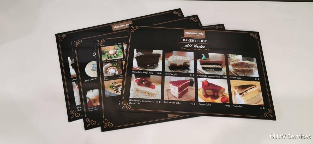 MIW Services มีประสบการณ์ในการออกแบบและทำเมนูอาหารให้กับลูกค้ามาแล้วมากกว่า 500 ราย มีตั้งแต่ร้านอาหารตามสั่ง จนถึงแบรนด์ร้านอาหารระดับประเทศ แม้เราจะให้บริการ พิมพ์เมนูอาหาร ราคาถูก แต่คุณภาพเกินราคา ทีมงานของเราใส่ใจทุกงานพิมพ์เหมือนเป็นงานของตัวเอง งานทุชิ้นต้องผ่านการ QC ก่อนถึงมือลูกค้า เราให้ความสำคัญกับลูกค้าทุกราย ไม่แบ่งแยกร้านเล็ก ร้านใหญ่ ร้านดังไม่ดัง
