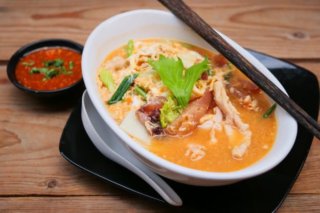 เป็นอีกเมนูที่คนชอบทานเส้น มักจะนิยมสั่งกัน เพราะจะมีเส้นแบบก๋วยเตี๋ยวให้เลือกหลากหลาย ไม่ว่าจะเป็นเส้นหมี่ เส้นใหญ่ เส้นเล็ก และยังมีบะหมี่กรอบอีกด้วย ซึ่งถ้าร้านไหนที่มีราดหน้าขาย มักจะแค่หยิบเส้นกับเนื้อสัตว์ใส่จานแล้วราดน้ำซุปลงไป ก็จะพร้อมเสิร์ฟขายได้ทันทีเลยค่ะ