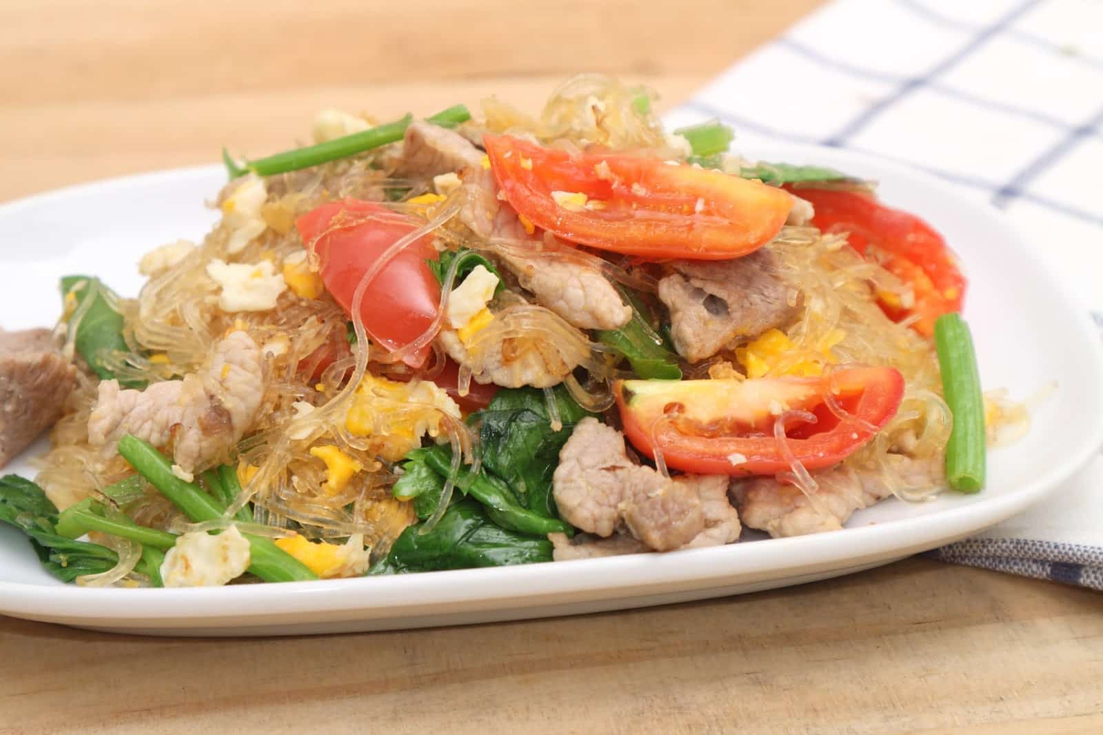 สำหรับคนชอบทานเส้น เมนูนี้ถือเป็นเมนูที่ประหยัดอีกเมนูหนึ่งในช่วงสิ้นเดือน เพราะสามารถทำได้ในปริมาณมาก และเก็บไว้ทานได้หลายมื้อ ส่วนประกอบก็มีไม่มาก มีวุ้นเส้น ไข่ เนื้อหมู ผักตามชอบ ก็จะได้เป็นเมนูแสนอร่อยทานคู่กับข้าวสาวยร้อน ๆ แล้วค่ะ