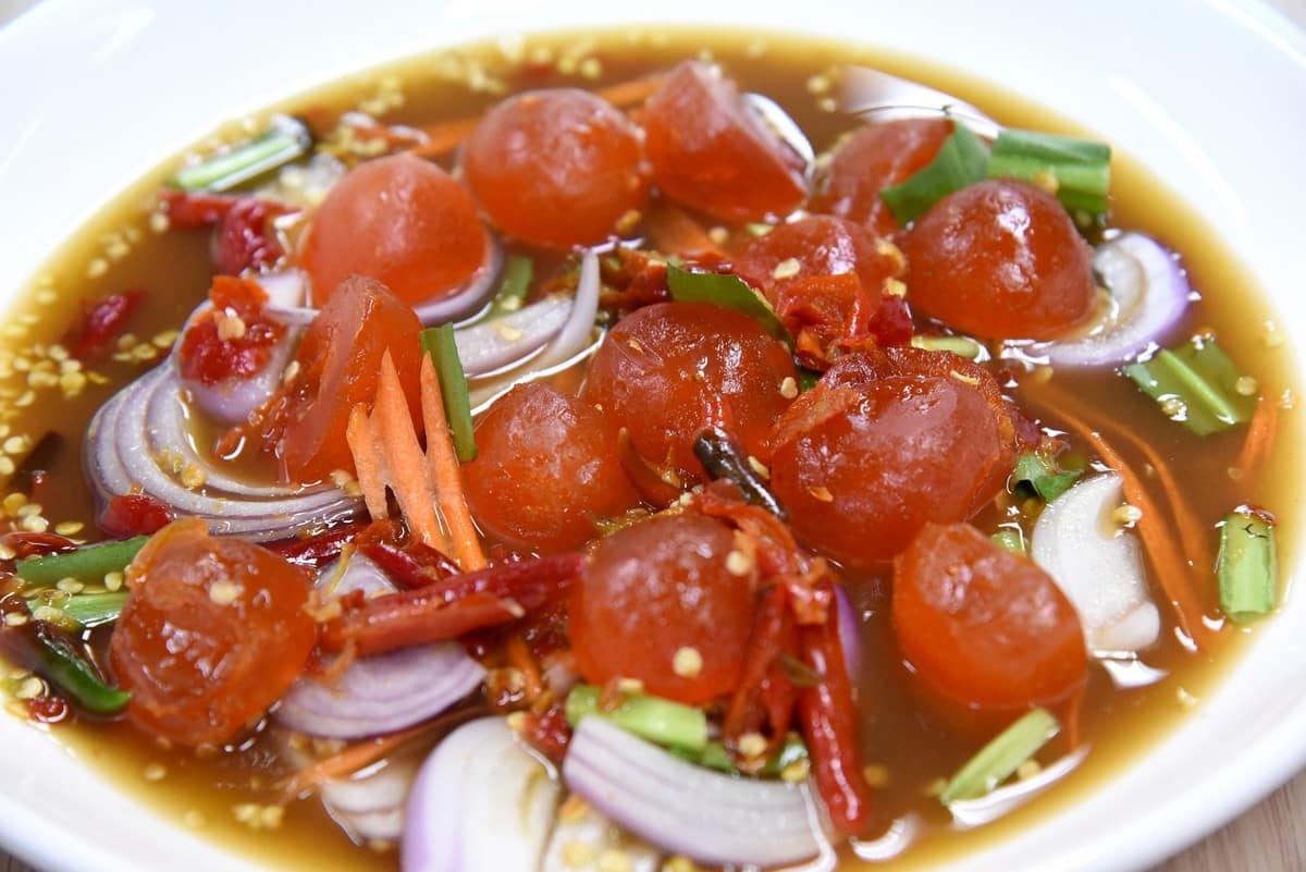 ตำรวมพล – ร้านยำเจ้าดังย่านสี่แยกเหม่งจ๋ายที่มีแฟนคลับเพียบ ใครชอบไข่แดงเค็มมันๆ กับน้ำยำที่ชูรสปลาร้านัวๆ รับรองไม่มีผิดหวัง หรือจะมิกซ์แอนด์แมทช์ส่วนผสม ใส่กุ้งหมึกหอยปูมากน้อยก็ระบุได้ เพราะทางร้านยินดีทำให้ แถมความแซ่บนัวยังมาในราคามิตรภาพ โดยยำไข่แดงเค็มของเราสนนราคาที่จานละ 100 บาทเท่านั้น