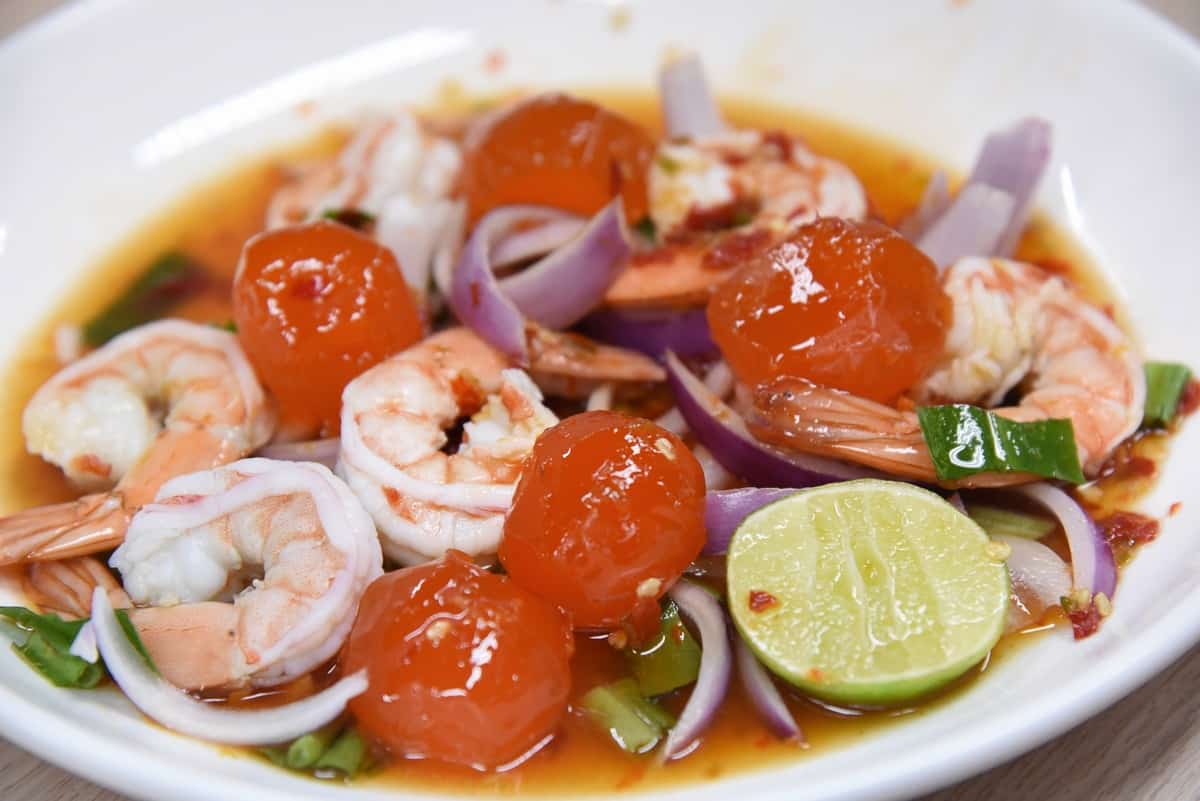 ยำแซ่บออนไลน์ By ครัวศิริพร – ร้านยำเด็ดประจำย่านศรีนครินทร์ที่ชื่อร้านบอกใบ้ไว้ชัดเจนว่าไม่มีหน้าร้าน และบริการแบบเดลิเวอรี่เท่านั้น โดยยำไข่แดงกุ้งสุกของครัวศิริพรเสิร์ฟที่จานละ 150 บาท รสชาติกลมกล่อมและเผ็ดร้อนอย่างเป็นเอกลักษณ์ ไข่แดงเค็มมันกำลังดีไม่เลี่ยนไป มีผักชีฝรั่งไว้ตัดรส ส่วนความสดของกุ้งไซส์กำลังพอดีคำก็ไม่ทำให้ผิดหวัง บอกได้คำเดียวว่าจานเดียวไม่เคยพอ