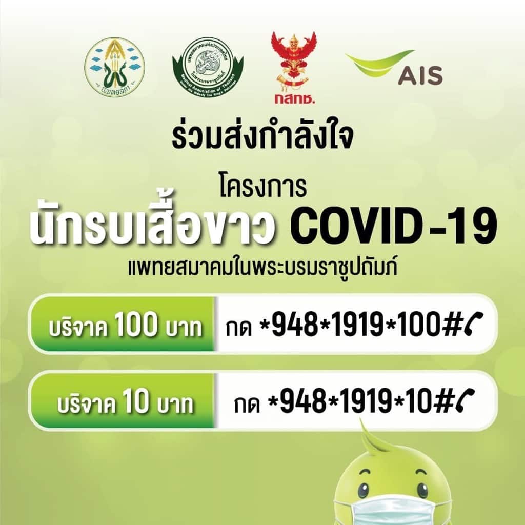 สามารถร่วมบริจาคเงินสมทบทุนกองทุนโครงการ “นักรบเสื้อขาว COVID-19”