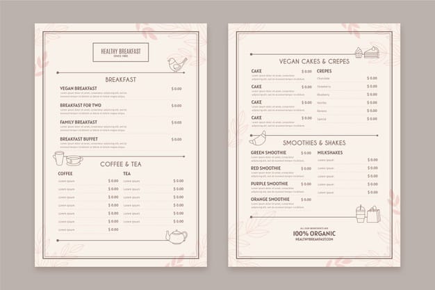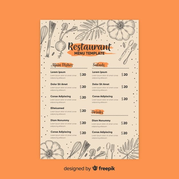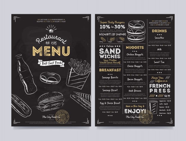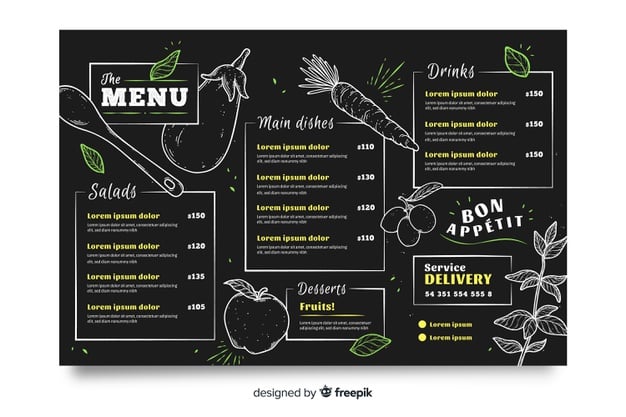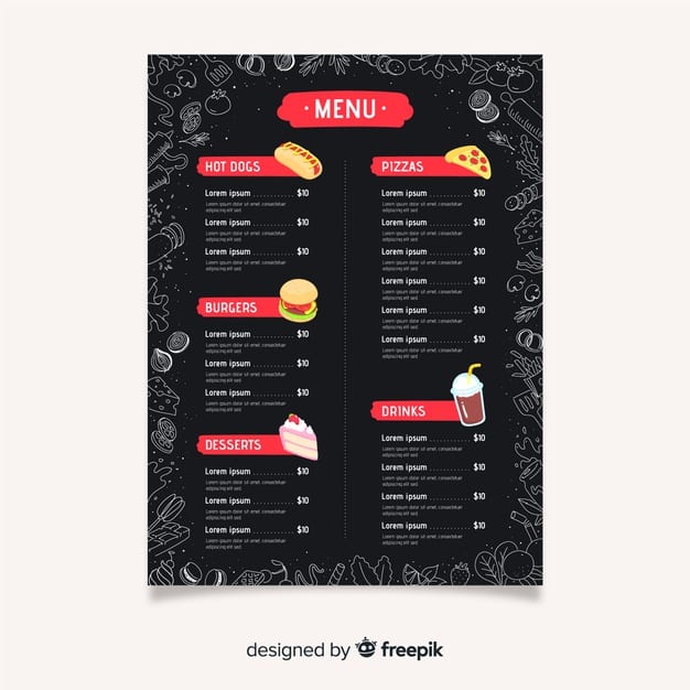 การทำร้านอาหาร ย่อมมีองค์ประกอบที่จำเป็นหลายอย่าง เริ่มตั้งแต่การหาทำเลที่ตั้ง การออกแบบ การตกแต่งร้านอาหาร การตั้งชื่อร้าน อาหารที่จะขายในร้าน รสชาติของอาหาร และอีกสิ่งหนึ่งที่ขาดไปไม่ได้เลยก็คือ เมนูอาหาร ซึ่งเมนูอาหารที่มีการออกแบบสวยงาม ดูดี มีการจัดหน้าเมนูให้ดูน่าสนใจ สิ่งเหล่านี้ก็เป็นองค์ประกอบสำคัญที่จะช่วยดึงความสนใจของลูกค้าให้รู้สึกอยากสั่งอาหารได้ และสำหรับใครที่ทำร้านอาหารอยู่ หรือกำลังจะเปิดร้านอาหารและกำลังมองหาเมนูอาหารแบบสวย ๆ วันนี้เราจึงได้นำเทมเพลตเมนูอาหารหลากหลายแบบมาแจกฟรีให้กับทุกคน ถ้าถูกใจอันไหนก็สามารถดาวน์โหลดกันได้เลย !