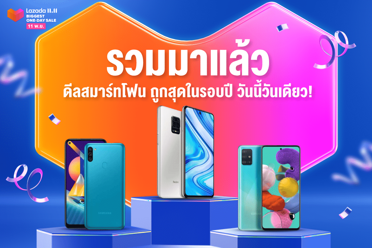 ใกล้เข้ามาแล้วกับมหกรรมช้อปที่นักช้อปต่างรอคอยกับ 11.11 สำหรับใครกำลังเตรียมช้อปสมาร์ทโฟนเครื่องใหม่ บอกเลยว่า งานนี้ลาซาด้าจัดโปรมาให้แบบจุกๆ ในแคมเปญ ‘Lazada 11.11 Biggest One Day Sale’ ขนสมาร์ทโฟนสเปคแรง ราคาสุดปัง ลดมากกว่าใคร ไม่ว่าจะเป็น คูปองส่วนลดสูงสุด 1,111 บาท แจกทุกวัน เวลา 11 โมง ตั้งแต่ 1 – 11 พฤศจิกายนนี้, คูปองส่งฟรีทั่วไทย* รวมถึง 5% Cashback* เมื่อซื้อสินค้า LazMall ทุกชิ้น และโปรโมชั่นสุดพิเศษอื่นๆ อีกมากมาย วันที่ 11 พฤศจิกายนนี้ วันเดียวเท่านั้น SAVE THE DATE แล้วไปช้อป ดีล ‘ถูกสุดในรอบปี’ กัน!
