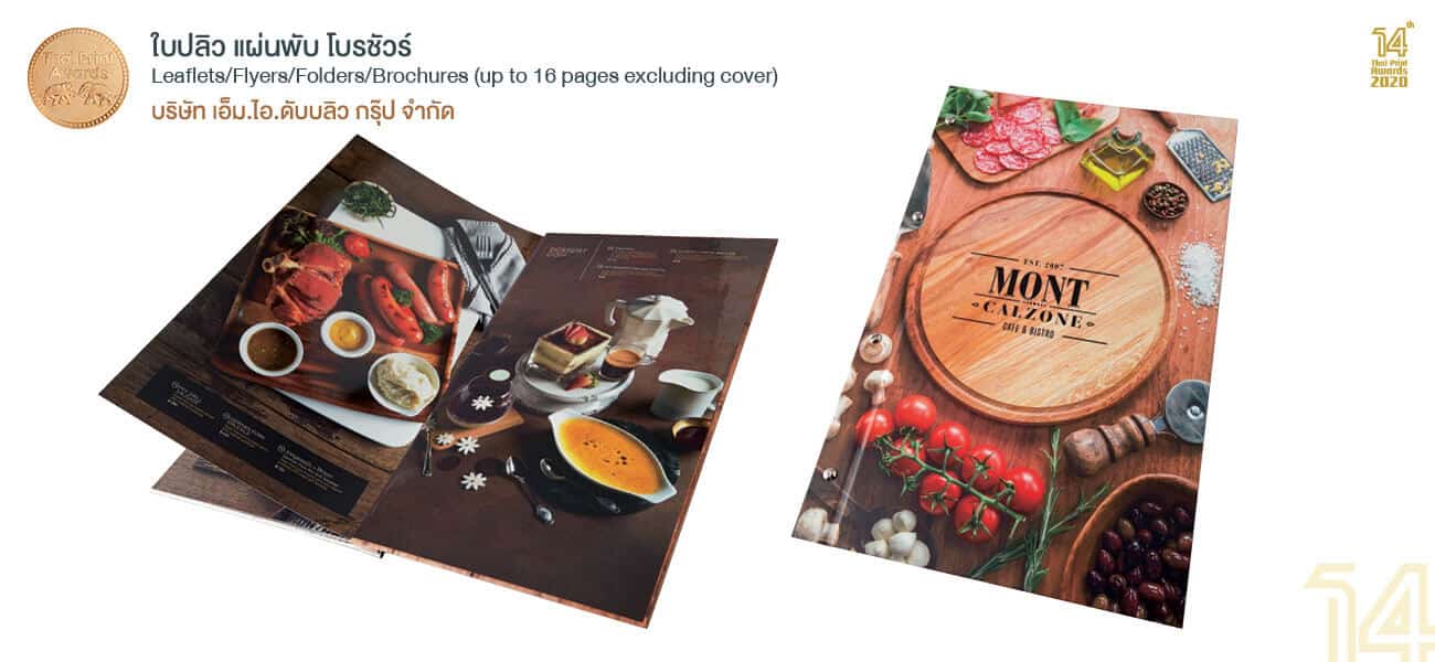 Bronze Award ประเภท ใบปลิว แผ่นพับ โบรชัวร์ (Leaflets / Flyers / Folders & Brochures) โดยเป็นงานพิมพ์ไม่จํากัดจํานวนสีพิมพ์ จํานวน 16 หน้าหรือน้อยกว่า (ไม่รวมปก)