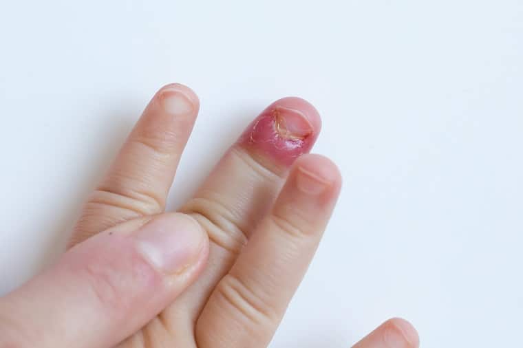 จมูกเล็บอักเสบ หรือผิวหนังรอบเล็บบวมแดง พบในคนที่สัมผัสกับน้ำบ่อย ๆ ผิวหนังรอบเล็บอาจมีการเปื่อยยุ่ย หรือเกิดการระคายเคืองจากสารเคมี เช่น น้ำยาล้างจาน และน้ำยาทำความสะอาด บางครั้งอาจเกิดการติดเชื้อรา เนื่องจากไม่รักษาความสะอาด ผู้ป่วยบางรายที่มีการติดเชื้อแบคทีเรียบริเวณผิวหนัง รอบเล็บอาจบวมแดง และมีหนองร่วมด้วย