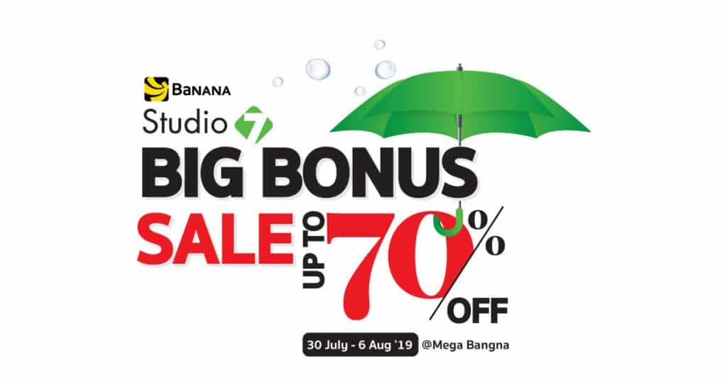 COM7 จัดโปรโมชั่นลดราคาสุดพิเศษจาก Studio 7 และ BaNANA ลดสูงสุด 70% ในงาน BIG BONUS Sale up 70% @Mega Bangna ผ่อนสบาย 0% นานสูงสุด 24 เดือน ตั้งแต่วันที่ 30 ก.ค. – 6 ส.ค. 62 นี้