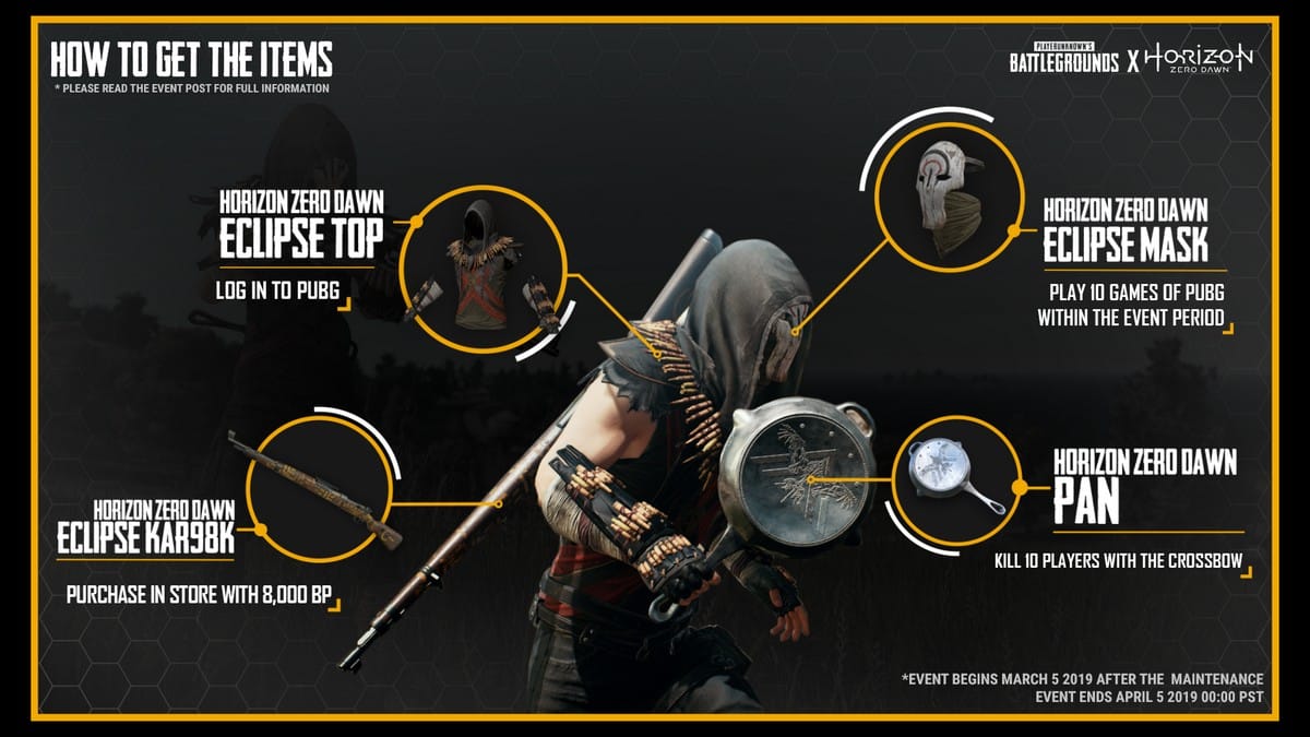 - Horizon Zero Dawn Eclipse Mask เล่นเกม PUBG ภายในระยะเวลาที่กำหนดของกิจกรรมจำนวน 10 เกม