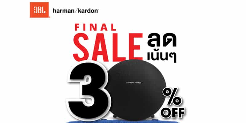 จัดโปรโมชั่นเอาใจสาวกลำโพง ลดเน้นๆ กับลำโพง JBL Charge3 จากราคา 6,590 บาท ราคาพิเศษเหลือเพียง 4,613 บาท และ Harman Kardon Onyx Studio4 จากราคา 8,990 บาท ราคาพิเศษเหลือเพียง 6,293 บาท