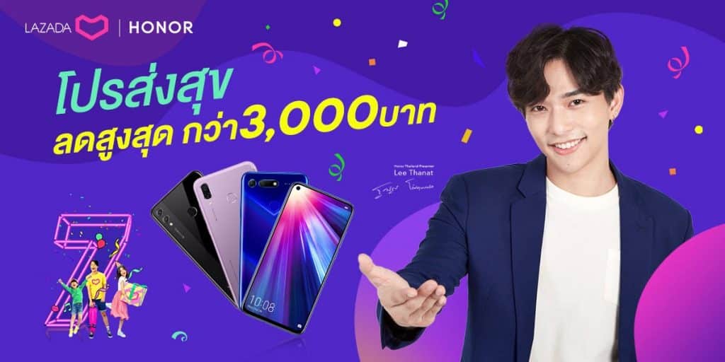 HONOR เอาใจขาช้อปยกขบวนสมาร์ทโฟนหลากหลายรุ่นมาจัดโปรโมชั่นสุดคุ้ม ลด แลก แจก แถม ร่วมฉลองวันเกิดครบรอบ 7 ปี Lazada ตั้งแต่วันที่ 21 มีนาคม – 27 มีนาคม 2562 นี้เท่านั้น
