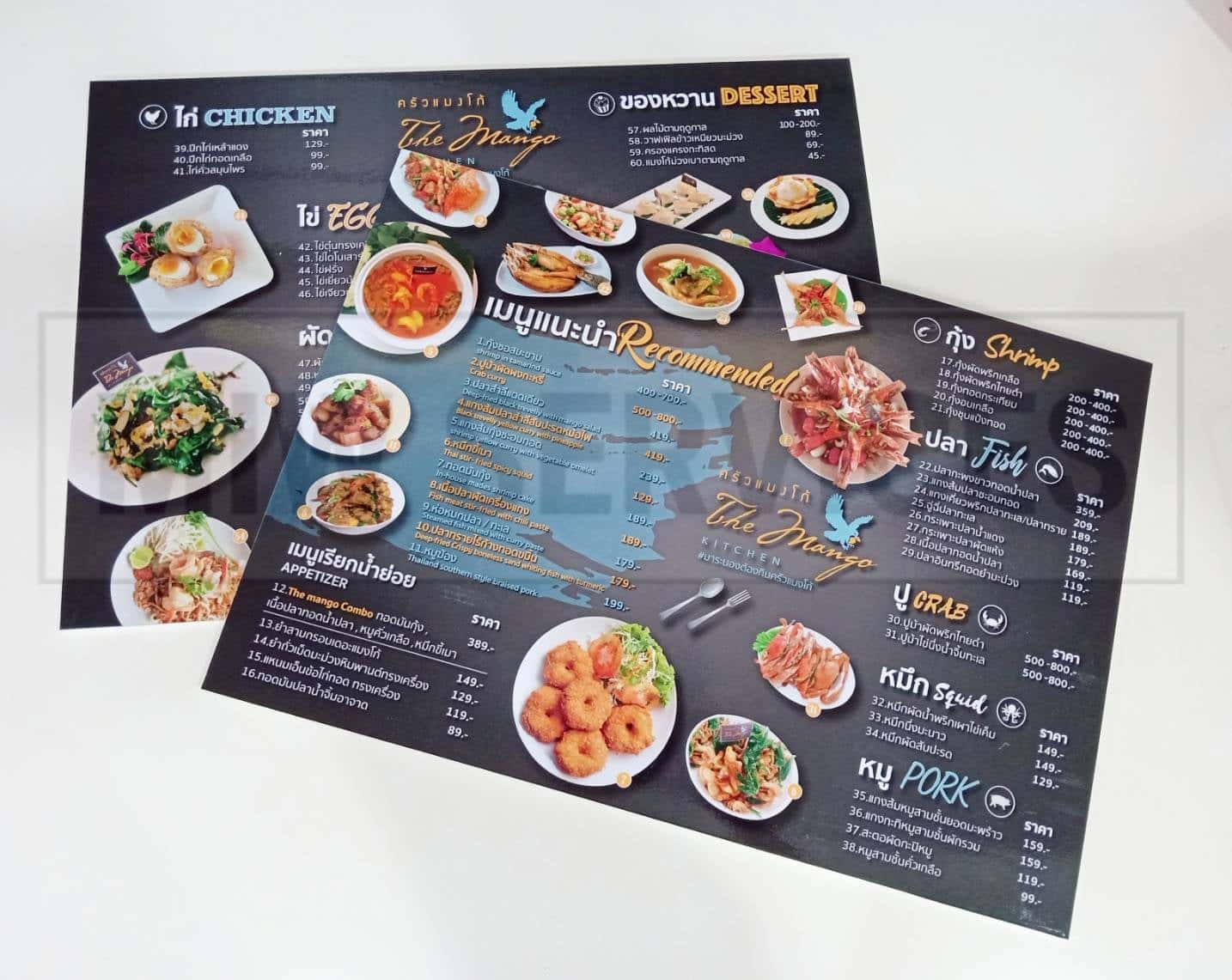 | สินค้า | งานพิมพ์เมนูอาหาร |